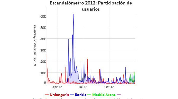 El Barómetro Social recoge tweets sobre recortes presupuestarios, la prima de riesgo, la independencia de Cataluña y la Monarquía. El Escandalómetro supervisa los tweets de los casos de Bárcenas, Bankia, Urdangarín y Arena, EREs de Andalucía, Caso Pujol y Caso Punica.